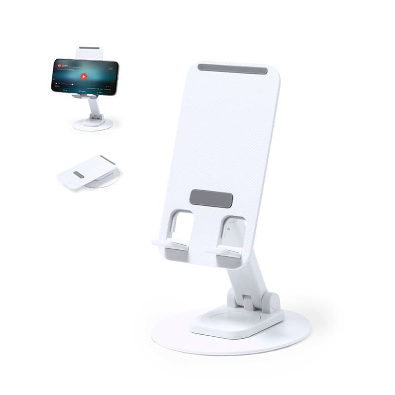 Soporte plegable para smartphone y tablet, fabricado en resistente aluminio y ABS.