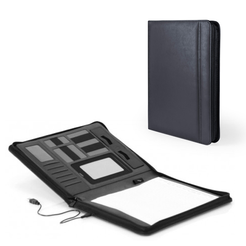 Carpeta de elegante y suave polipiel negra con batería auxiliar