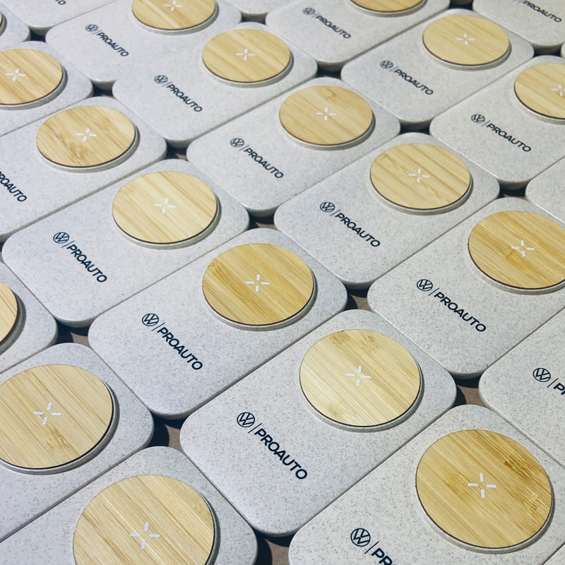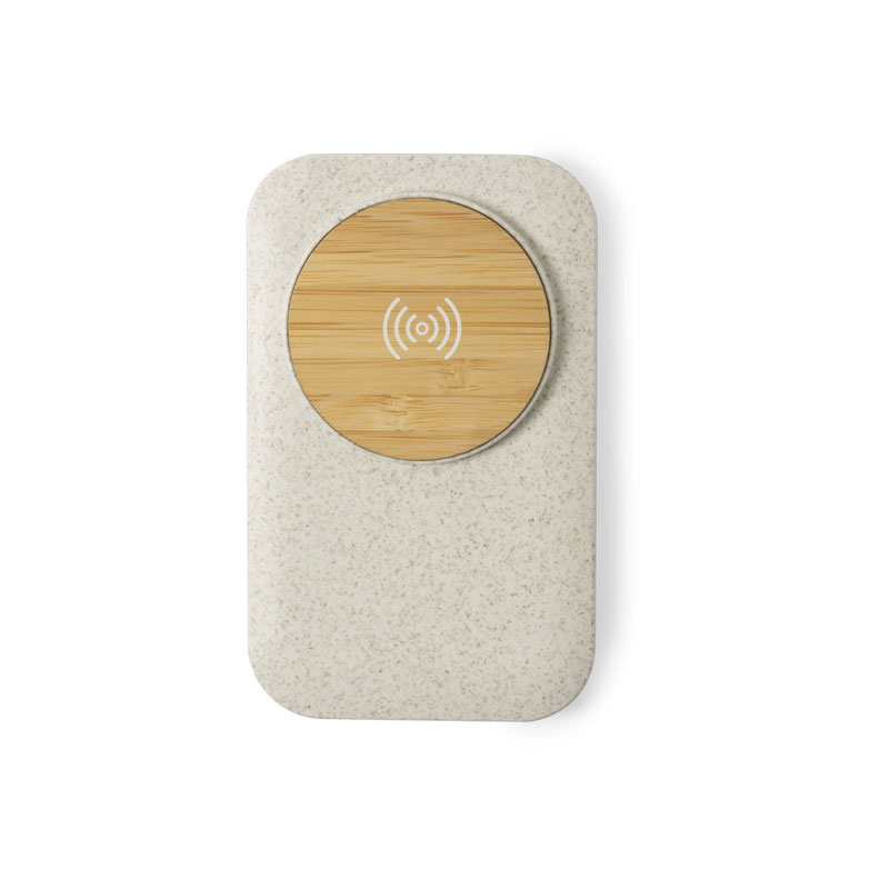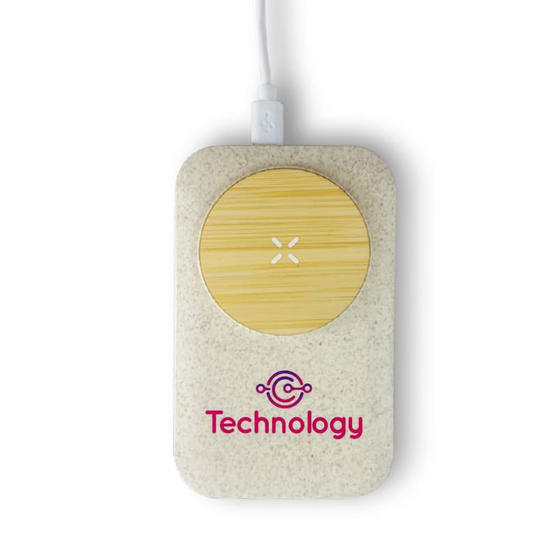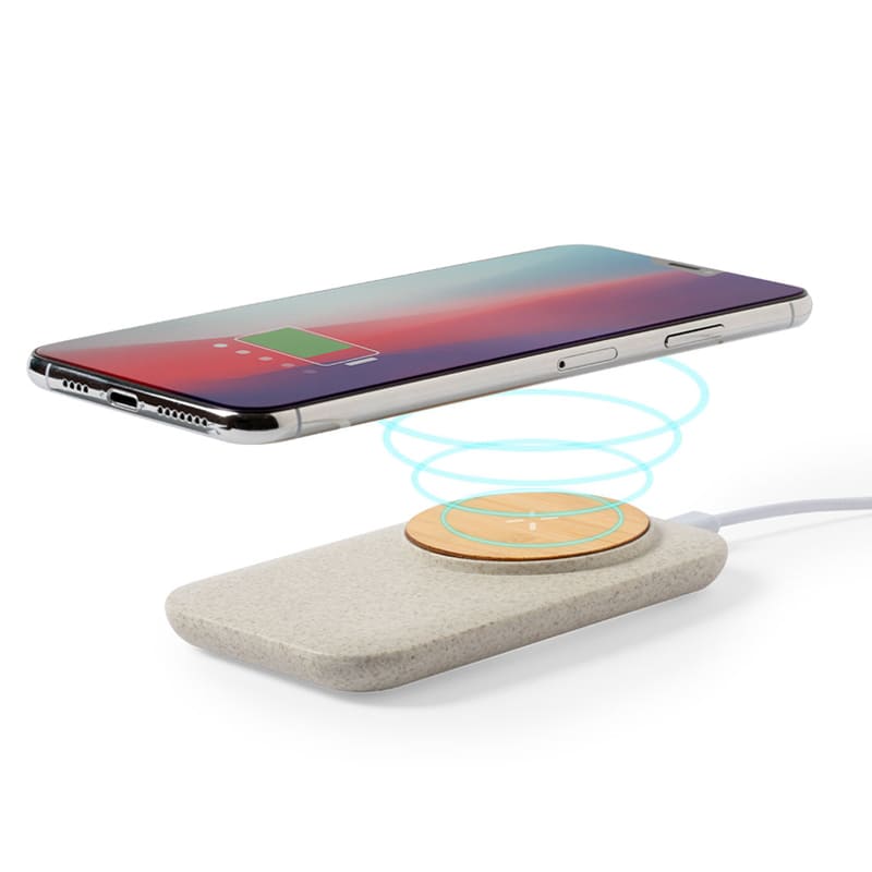 Cargador inalámbrico de línea nature. Hecho en bambú en combinación con caña de trigo,