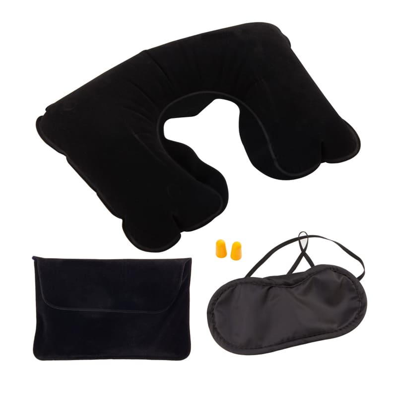 Set de viaje de 3 accesorios presentado en funda suave antelina