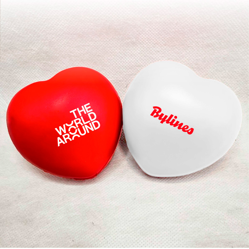 Corazón antiestrés en vivos colores y suave cuerpo con acolchado brillante.