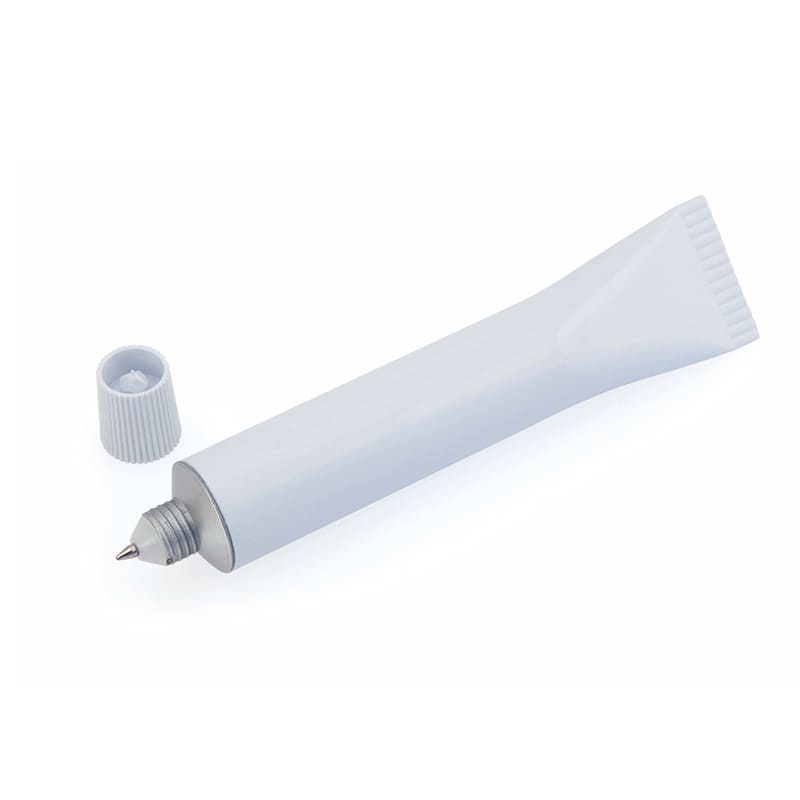 Bolígrafo con diseño de tubo y cuerpo sólido en color blanco.