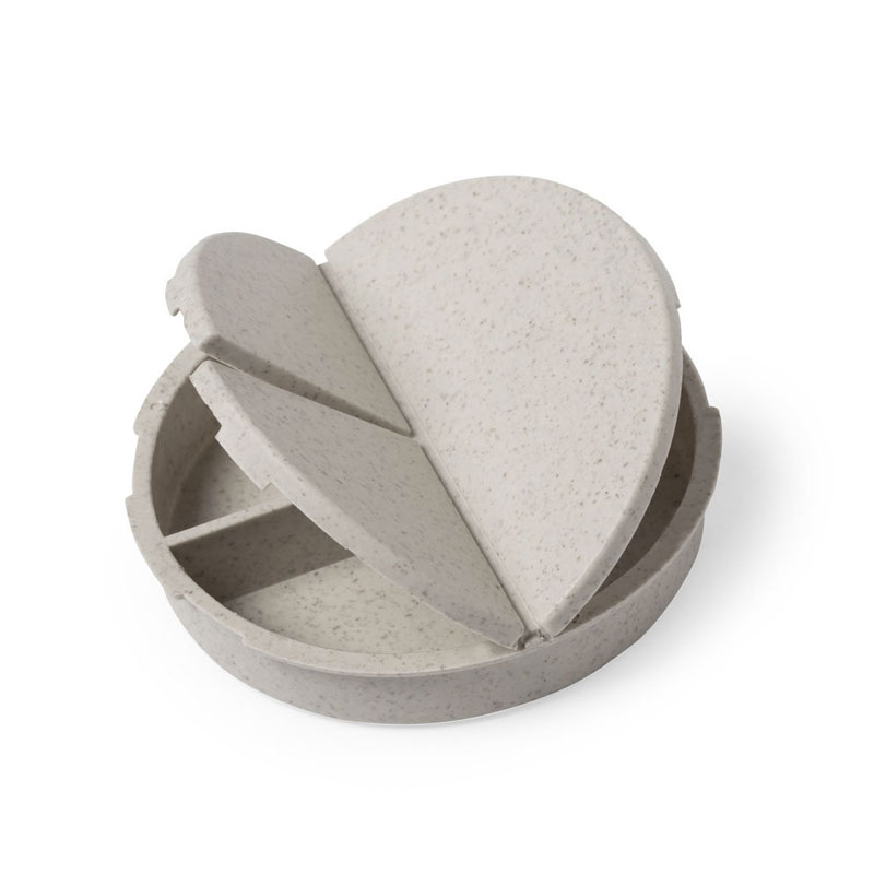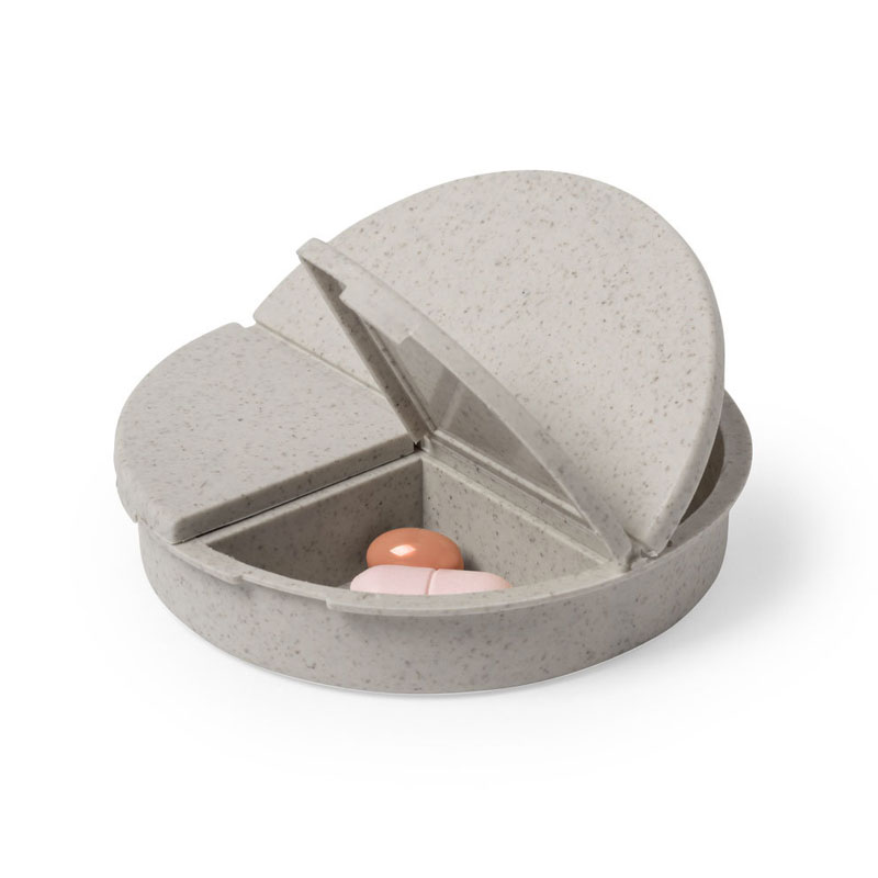 Pastillero en línea nature, fabricado en fibra de bambú. Con 3 compartimentos y cierre de seguridad.