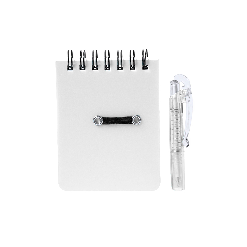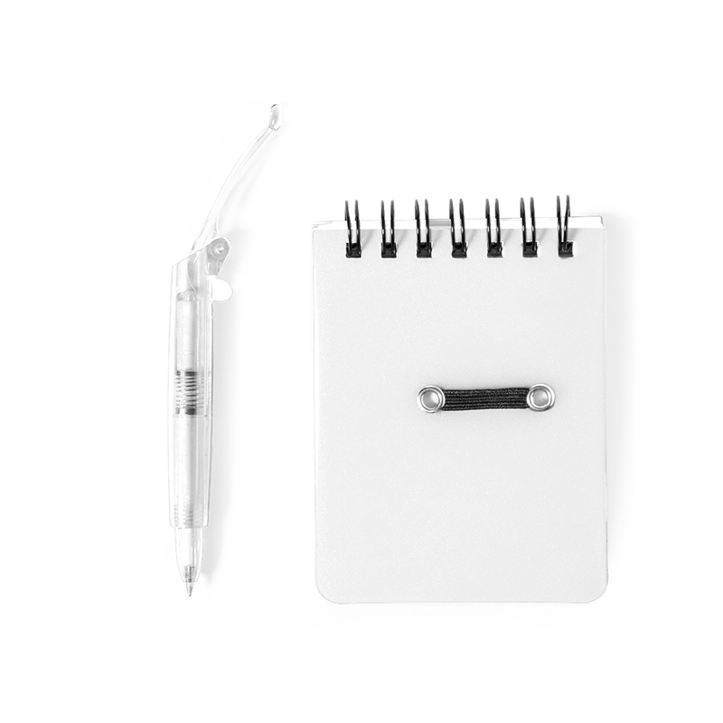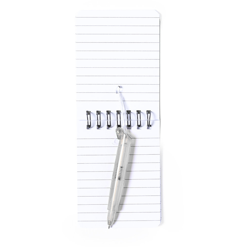 Mini cuaderno con anillo con minibolígrafo en tapa a juego.