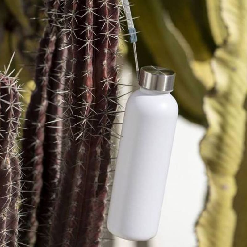 Con tapón de seguridad rosca en acero inox y cinta de transporte.