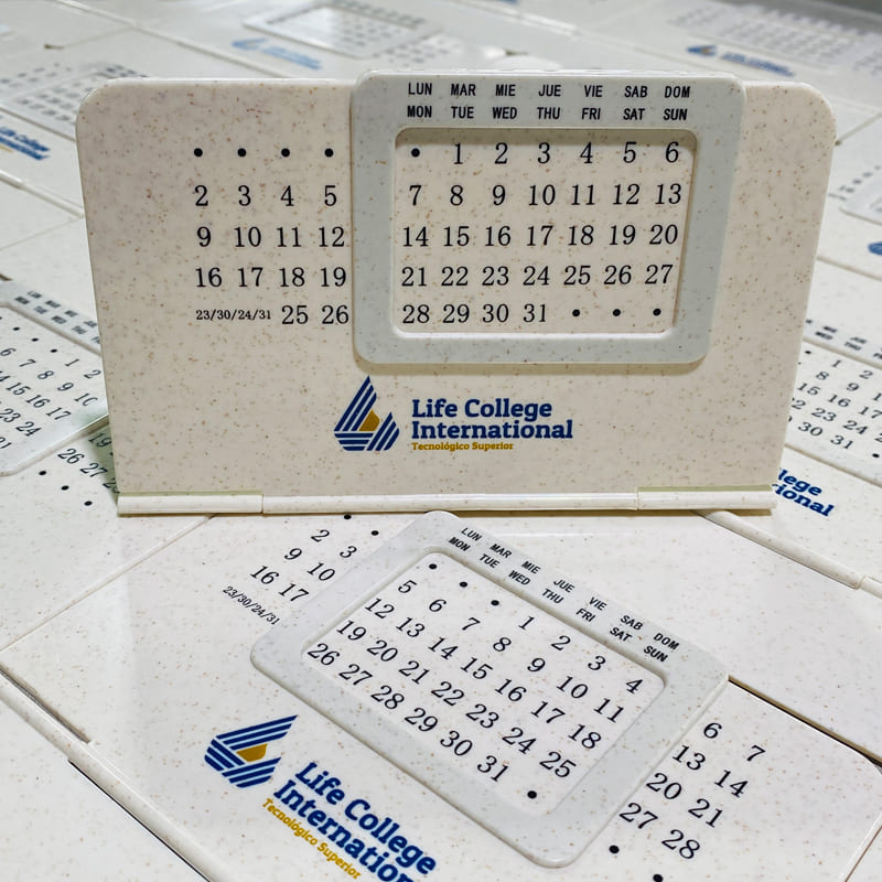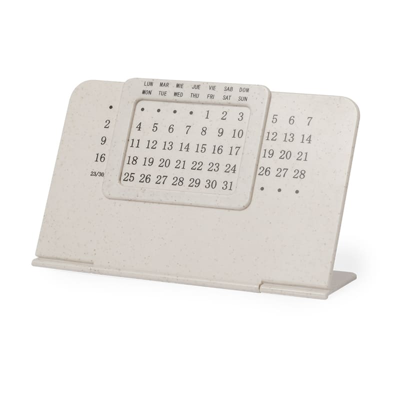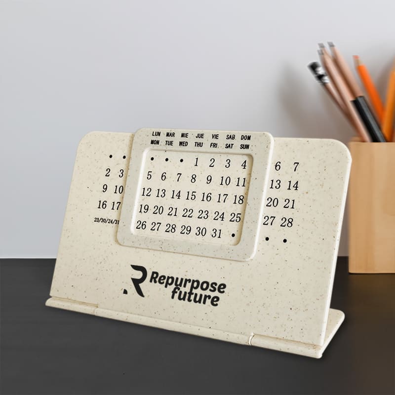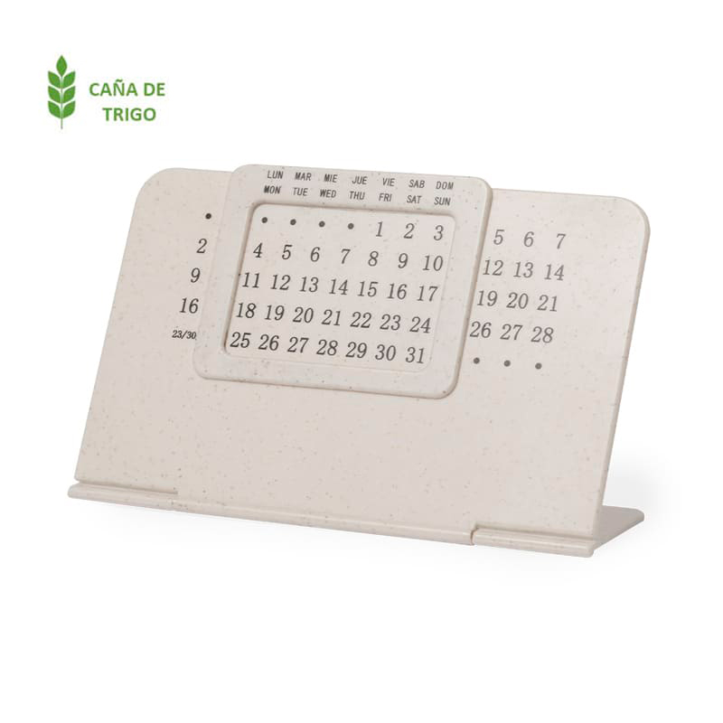 Calendario perpetuo fabricado en caña de trigo. Con soporte plegable.