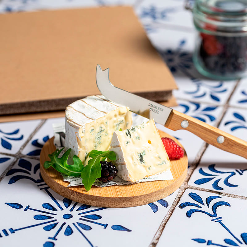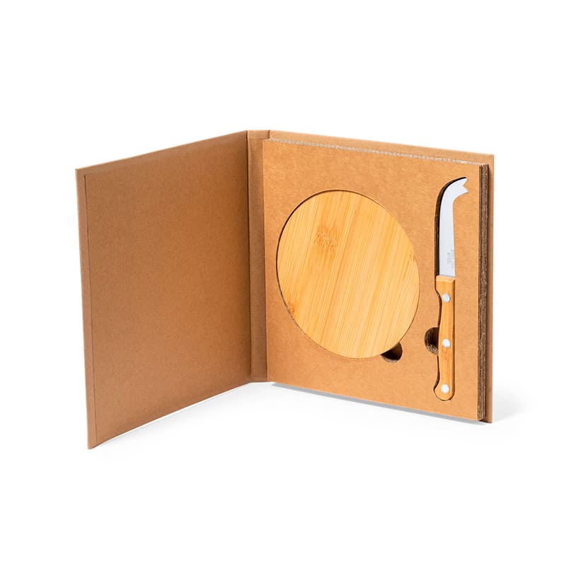 Incluye tabla de corte y presentación redonda y cuchillo especial para queso.