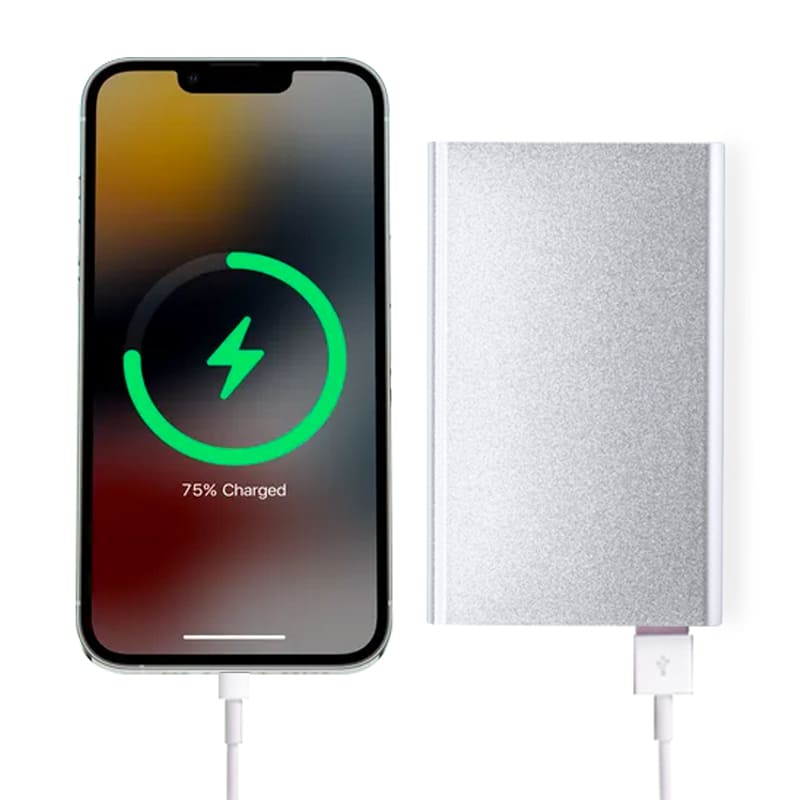 Batería auxiliar externa de 2.200 mAh fabricada en aluminio.