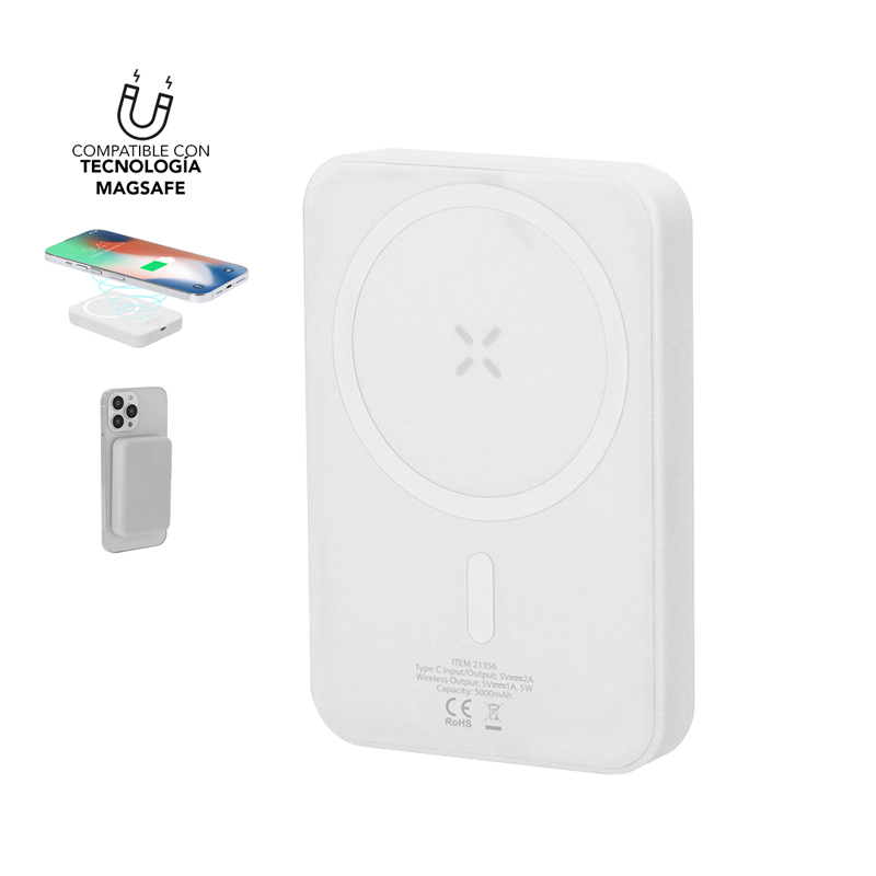 Batería auxiliar externa de 5.000 mAh con carga inalámbrica de 5W con fijación magnética