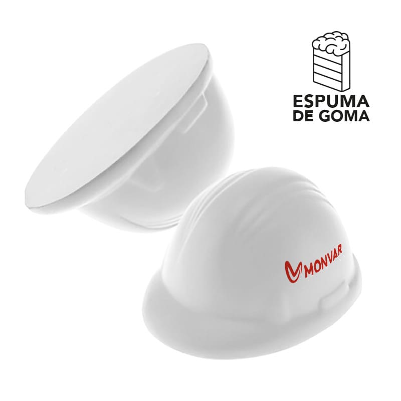 Antiestrés en forma de casco de trabajo, fabricado en un suave PU.