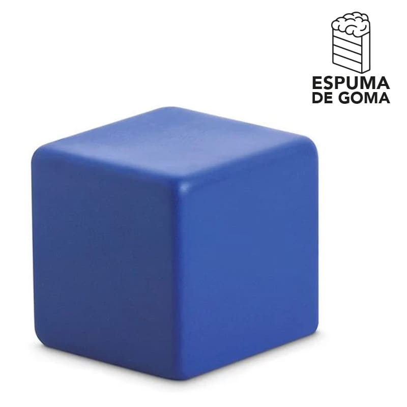 Antiestrés en forma de cubo, fabricado en un suave PU.