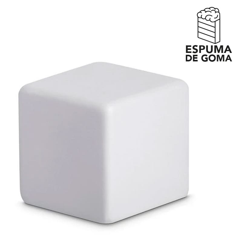 Antiestrés en forma de cubo, fabricado en un suave PU.