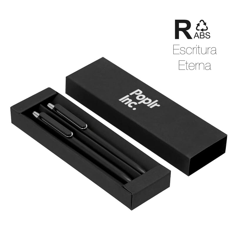 Set compuesto por un bolígrafo de tinta azul y un lápiz eterno, ambos fabricados en RABS.