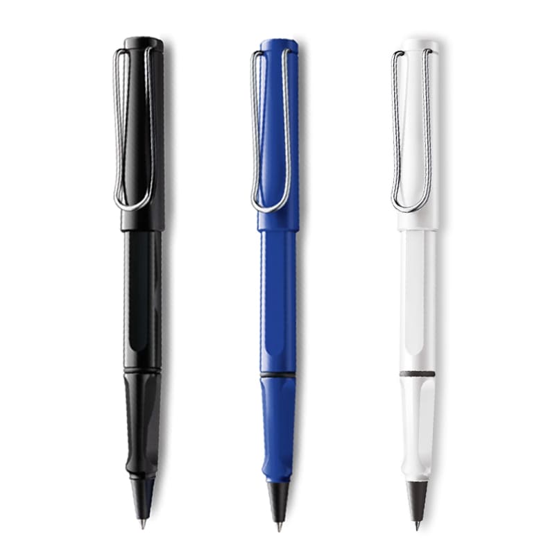 cuerpo de color sólido, punta y círculo de plástico negro.